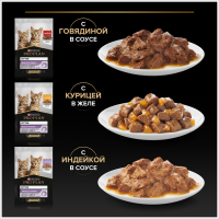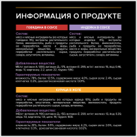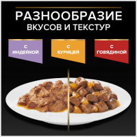 • Разнообразие вкусов и текстур: желе, кусочки в соусе и паштет со вкусом курицы, говядины или индейки