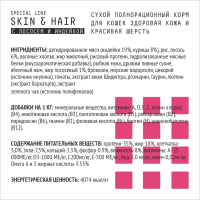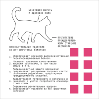 Особый баланс аминокислот, витаминов и минералов, удовлетворяющий потребности длинношерстных кошек, а также кошек с проблемами кожи и шерсти.