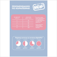 AlphaРet Menu — Свежие мясные и рыбные ингредиенты в составе позволяют достичь максимальной усвояемости рациона, прекрасного вкуса и снижения нагрузки на пищеварительную систему.