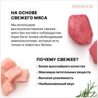 Мы используем свежее мясо высшего сорта, изначально пригодное для употребления человеком. Это гарантирует, что ваш питомец получает высокопитательный, чрезвычайно вкусный, легко усвояемый высококачественный источник белка.