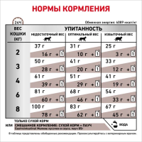 Посоветуйтесь с вашим ветеринарным врачом по поводу целесообразности использования данного корма. Применяйте сухой корм GASTROINTESTINAL в течение не менее 1-2х недель при острой диарее и в период восстановления, до полного выздоровления.