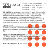 Баланс минеральных веществ и витаминов, в комплексе с хондропротекторами и повышенной питательностью способствует правильному росту и формированию крепких костей и суставов у щенков средних и крупных пород.