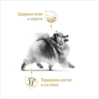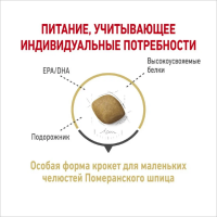 Форма, размер, текстура и состав гранул специально разработаны с учетом неболшого размера челюстей собак породы Померанский Шпиц.