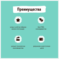 Полнорационный и сбалансированный корм с тщательно подобранным составом и необходимым комплексом питательных веществ поможет сохранить здоровье и активность Вашего питомца для достижения великих целей!