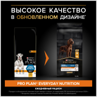 Изучая потребности собак на протяжении многих лет, команда квалифицированных ветеринарных специалистов и диетологов PURINA разработала сухой корм PRO PLAN® Everyday Nutrition — ежедневный рацион с высоким содержанием курицы для взрослых собак крупных пород с атлетическим телосложением. Этот полнорационный корм сбалансирован по составу и помогает поддерживать здоровье вашей собаки на протяжении всей жизни.