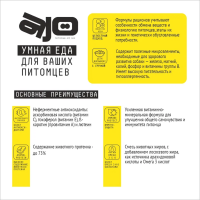 Оптимальный размер гранул, высокая питательность и большое количество жира и белка для восполнения энергопотерь, характерных для собак миниатюрных пород.