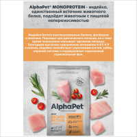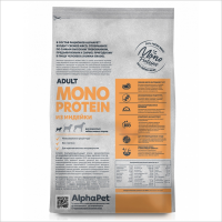 AlphaРet Monoprotein - возможность кормить питомца высокомясным, сбалансированным рационом с простым и понятным составом, на основе только одного источника белка животного происхождения. Корм подойдет в качестве исключающей диеты.