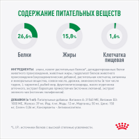 Способствует поддержанию оптимального веса благодаря оптимальной калорийности рациона, отвечающей энергетическим потребностям собак мелких размеров. Формула также содержит L-карнитин.