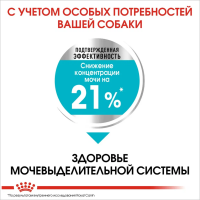 Собаки мелких пород обычно пьют мало воды, что может привести к высокой концентрации мочи. В моче могут образовываться кристаллы при высоких уровнях некоторых минеральных веществ в мочевом пузыре. Питание может сыграть важную роль в поддержании баланса минеральных веществ, чтобы моча оставалась ненасыщенной. Формула способствует разбавлению мочи и поддерживает баланс минеральных веществ. Этот полнорационный продукт можно использовать в течение длительного времени для создания условий, неблагоприятных для образования мочевых камней.