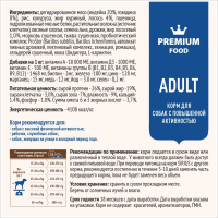 Повышенное содержание животных ингредиентов (48%), а также высокая калорийность (4108 ккал/кг) подойдет для собак с высоким уровнем физической активности, рабочих (служебных) собак, а также собак, живущих на улице в холодное время года.