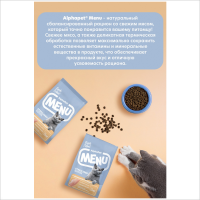 AlphaРet Menu — Свежие мясные и рыбные ингредиенты в составе позволяют достичь максимальной усвояемости рациона, прекрасного вкуса и снижения нагрузки на пищеварительную систему.