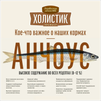 • Содержание анчоуса в рецепте корма даёт питомцу широкий набор незаменимых аминокислот и способствует поддержанию здорового веса
