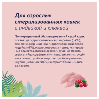 Florida Turkey & Cranberries - сухой корм супер-премиум класса с индейкой и клюквой для стерилизованных кошек в возрасте от 1 до 8  лет. Сбалансированное полнорационное питание заботится о коже и шерсти и способствует здоровому пищеварению. В рационе кормов Florida используется только белок животного происхождения.