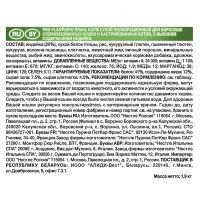 индейка (20%), сухой белок птицы, пшеница, рис, кукурузный глютен, пшеничный глютен, кукуруза, волокна пшеницы, клетчатка, животный жир, яичный порошок, минеральные вещества, рыбий жир, аминокислоты, вкусоароматическая кормовая добавка, дрожжи, консерванты, витамины.