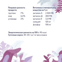 Рекомендации по кормлению30-40г на 1кг веса кошки. Суточная норма может варьироваться в зависимости от возраста, комплекции и уровня активности вашего питомца. Не забывайте своевременно пополнять миску свежей питьевой водой. Возможно смешанное кормление (сухой + влажный корм)