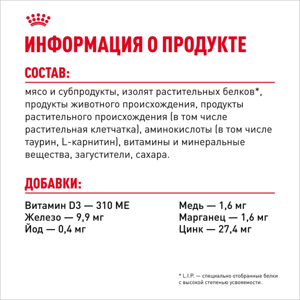 В период снижения веса огромное значение имеет сохранение мышечной массы кошки. Вот почему ROYAL CANIN®Light Weight Care мелкие кусочки в соусе отличается высоким содержанием белка: это помогает кошке поддерживать мышечную массу без повышения потребления калорий – а, следовательно, постоянно оставаться в хорошей физической форме.