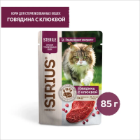 Влажный корм для кошек Sirius говядина с клюквой 85 гр