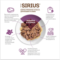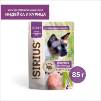 Влажный корм для кошек Sirius индейка и курица 85 гр
