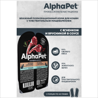 Влажный корм для кошек с чувствительным пищеварением AlphaPet Superprenium с ягненком и брусникой 80 гр
