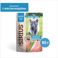 SIRIUS — влажный корм премиум-класса для полноценного ежедневного рациона котят с 1-2-х месяцев до 1 года.