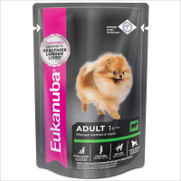 Eukanuba AdultAllBreed  - влажный рацион с говядиной в соусе для взрослых собак. Полноценное и сбалансированное питание для взрослых собак всех пород в возрасте старше 1 года с высококачественным животным белком.