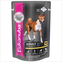 Eukanuba AdultAllBreed  - влажный рацион с курицей в соусе для взрослых собак. Полноценное и сбалансированное питание для взрослых собак всех пород в возрасте старше 1 года с высококачественным животным белком.