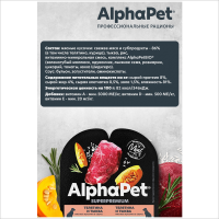 AlphaРet Superpremium — выбор владельцев, которые хотят быть уверены в том, что дают своему питомцу лучшее из возможного: натуральные отборные ингредиенты, высокое содержание животного белка и свежее мясо в основе состава. AlphaPet Superpremium ставит точку в споре о том, чем кормить питомца.