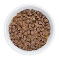 Рекомендации по кормлению: Переход с предыдущего рациона осуществлять постепенно, небольшими порциями в течение 5-7 дней. При кормлении необходимо учитывать активность и аппетит животного. Корм должен быть комнатной температуры. Содержимое открытой упаковки хранить при температуре +5°С и использовать в течение 2 дней.