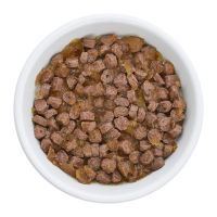 Рекомендации по кормлению: Переход с предыдущего рациона осуществлять постепенно, небольшими порциями в течение 5-7 дней. При кормлении необходимо учитывать активность и аппетит животного. Корм должен быть комнатной температуры. Содержимое открытой упаковки хранить при температуре +5°С и использовать в течение 2 дней.