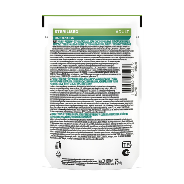 НОВИНКА !!! Влажный корм для стерилизованных кошек Pro Plan Sterilised ПАШТЕТ с океанической рыбой 75 гр