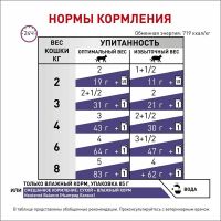 • ежедневный рацион определяется из расчета: для кошки весом 4 кг требуется 3 упаковки влажного корма при сочетании с сухим кормом